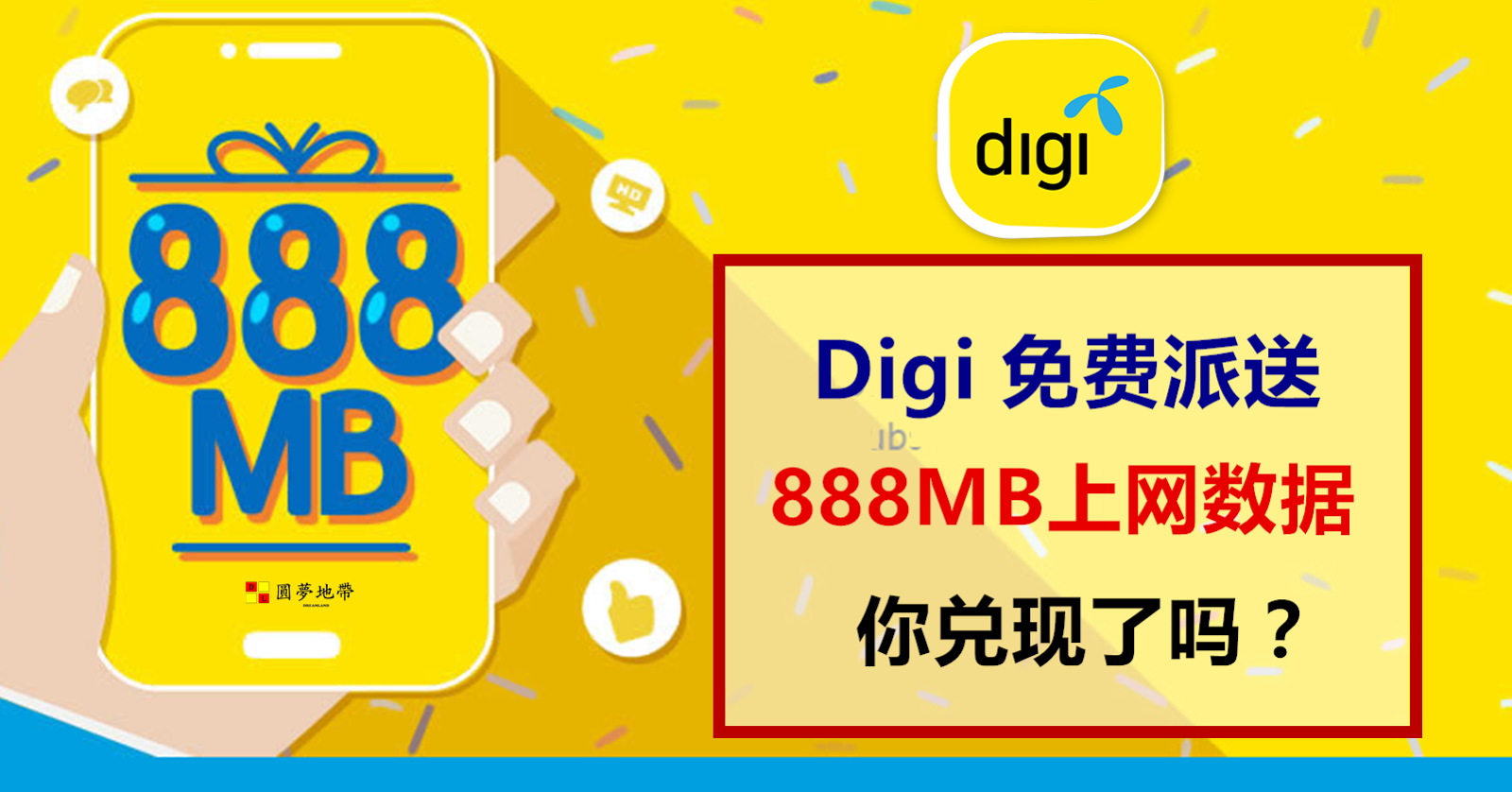 好消息!各位Digi Postpaid 的用户注意,Digi 免费派送888 MB上网数据!