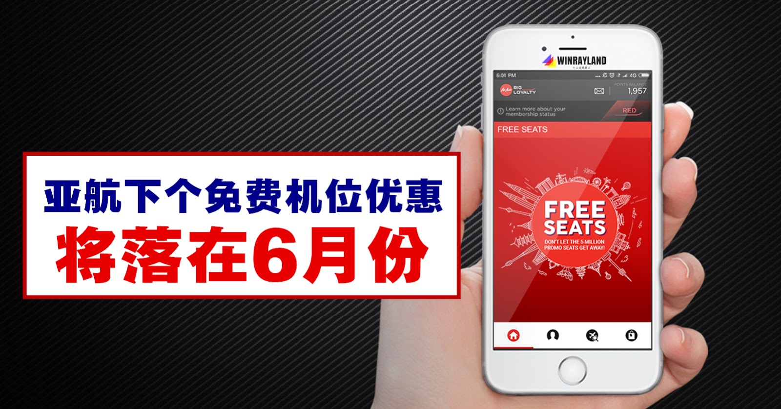 亚航(AirAsia)将在6月份第一个星期或第二个星期推出免费机位(Free Seats)优惠。