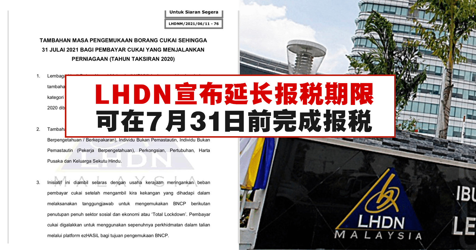 根据内陆税收局(LHDN)所发出的文告显示,经商人士的报税期间将获得延长至7月31日。相关人士可获得额外15天至30天的报税期间。