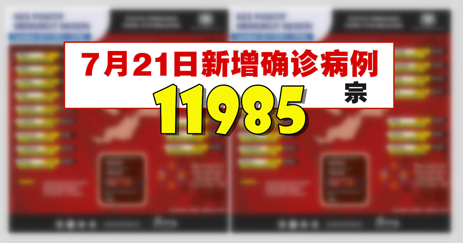 截至7月21日中午12点,马来西亚共新增了11,985宗新冠肺炎确诊病例。