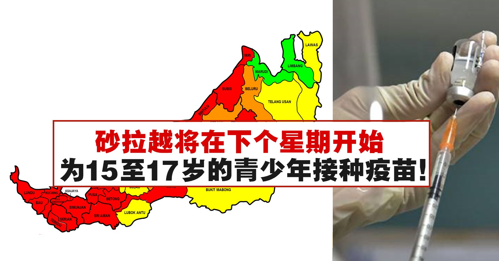 砂拉越将在下个星期开始为15至17岁的青少年接种疫苗!