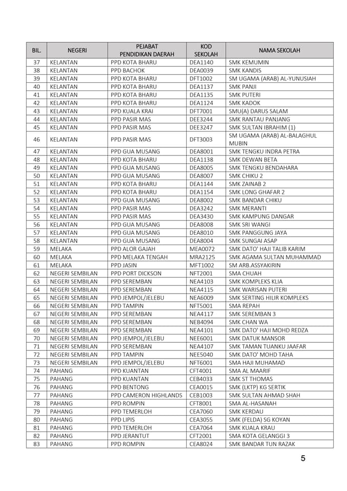 教育部列出了289所学校的名单,这些学校的考试班依旧会以轮班制度上课,教育部也会即时更新名单。其他年级的学生则依旧以轮班制上课,直到教育部做出最新的公布。
