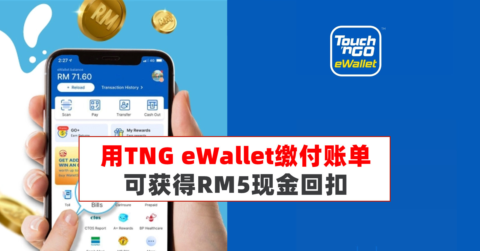 通过Touch ‘n Go eWallet缴付账单,将可获得RM5现金回扣。