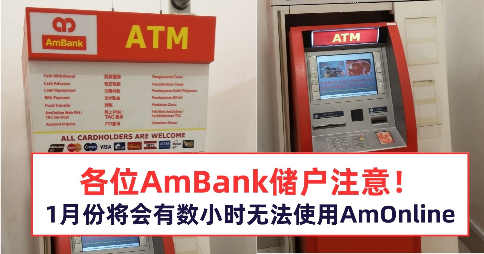 各位AmBank储户注意!AmBank将会对Debit Card系统进行升级,期间将无法使用ATM和AmOnline。