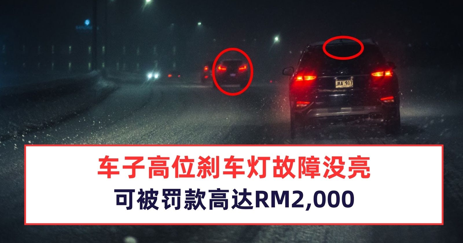 各位开车人士注意!车子的高位刹车灯损坏没亮的话,你将会被罚款高达RM2000。